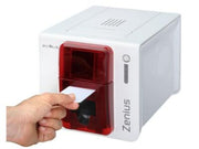 • Evolis Zenius Classic Printer: Single-sided thermal transfer printer in Fire Red.